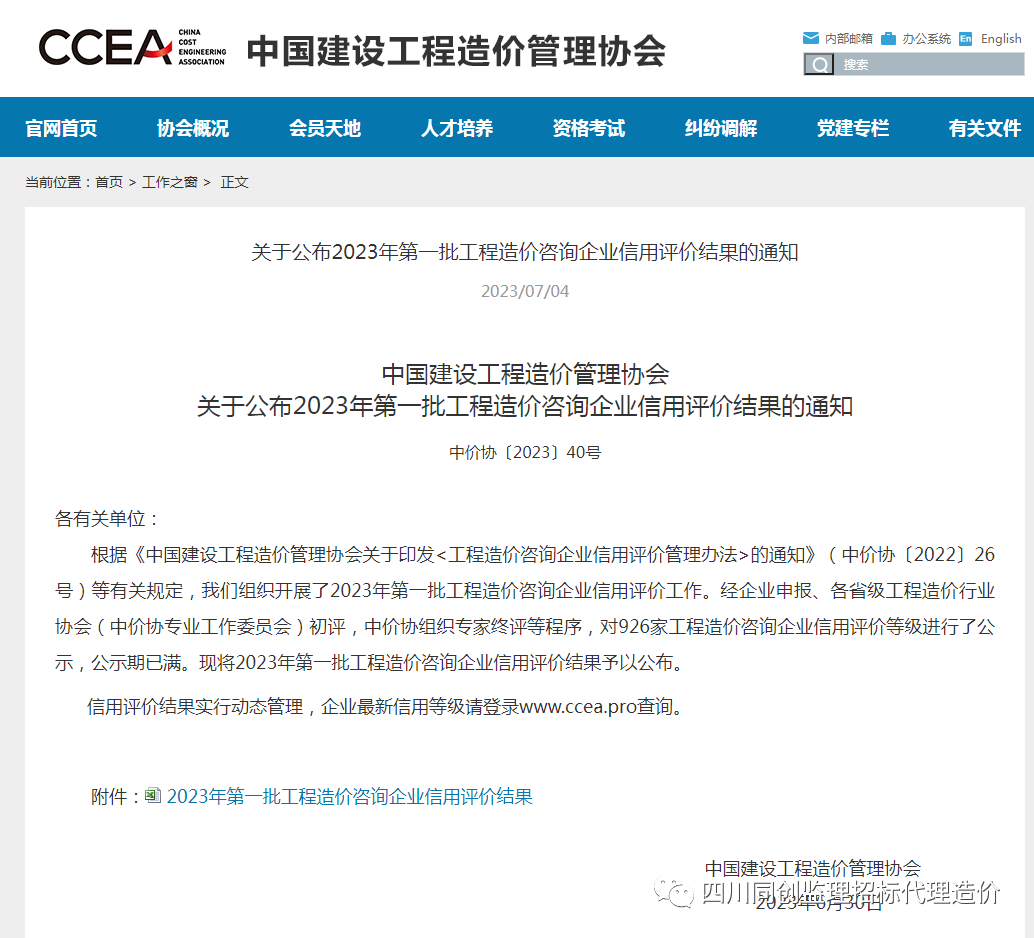 近日,中國建設工程造價管理協會發布關于2023年第一批工程造價咨詢企業信用評價結果的通知。四川同創建設工程管理有限公司榮獲中價協工程造價咨詢企業信用評價最高等級——AAA級,為公司更好地服務客戶、創造價值提供了強有力的資信保障!